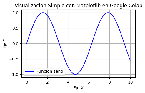 plt.title('Visualización Simple con Matplotlib en Google Colab')