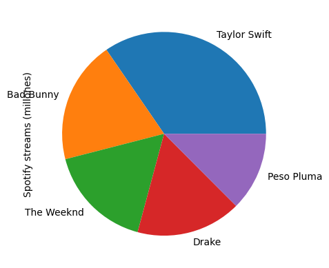 df_artistas.plot.pie(x="Artista", y="Spotify streams (millones)", labels=df_artistas.Artista, legend=False)